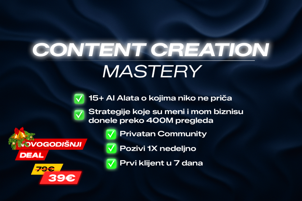 - Pred nama je NOVA ERA digitalizacije i društvenih mreža, a jedini Skill koji će večno plaćati i koji će SVIMA uvek trebati je Content Creation, ali koji pravi rezultate.